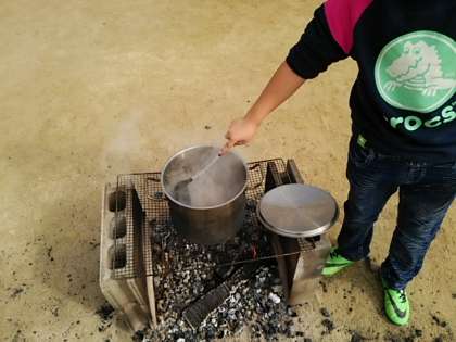 飯ごうでご飯を炊き、包丁を使って、肉や野菜を、切っていきます。大人の力を借りずに作ります。そうして出来上がったカレーライスは、一際おいしいです。