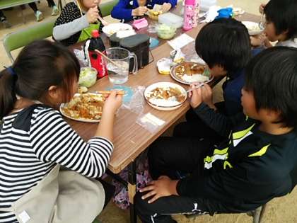 4年生の希望者30数名が、カレー作りに挑戦しました。スーパーへの買い出しから、調理まで、班ごとに分かれ、協力し合いながらカレー作りを行います。
