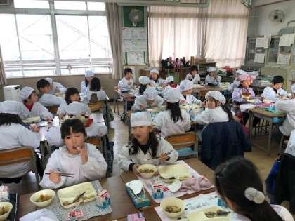 いり大豆は、節分の日なのでみんな年の数の分だけの豆をまず数えて食べて、それから残りを食べるなど楽しみながら食べていました。
