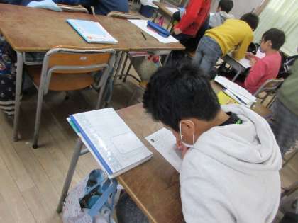2組でも、同じく、プリントに取り掛かり、集中して考えて計算しています。