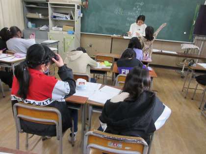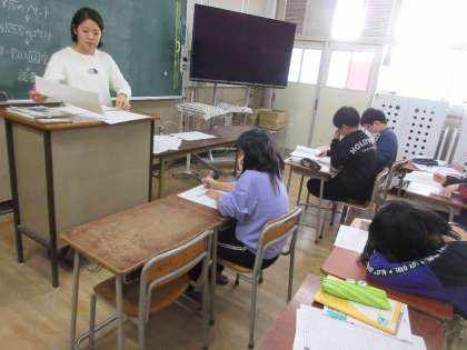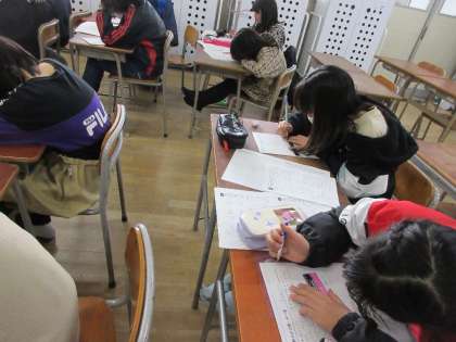 なかよし3でも、プリントの問題に集中しています。できた人は、先生に見てもらっています。