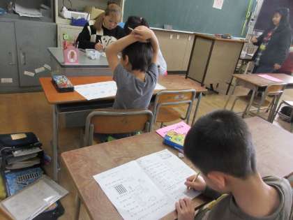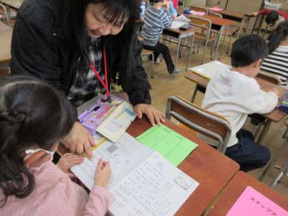 放課後、なかよし3の教室で、1年生の参加者が学習をしました。