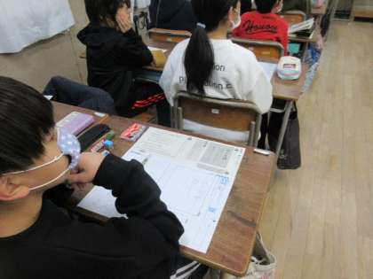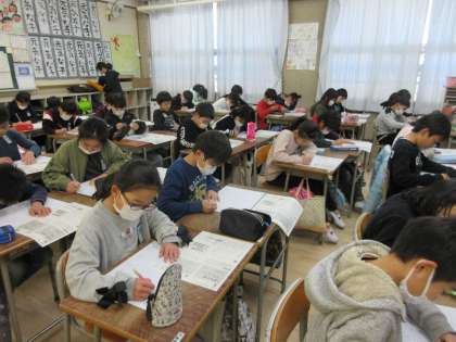 姿勢を正して,えんぴつをもち、丁寧に文字を書いています。