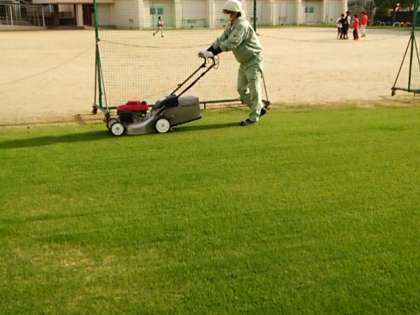11月10日、管理作業員さんによって、冬芝の芝刈りを行いました。