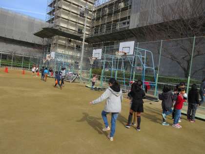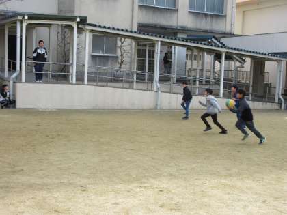 今年一番の寒い朝でしたが、子どもたちは、15分休みに運動場へ出て、元気に遊んでいます。