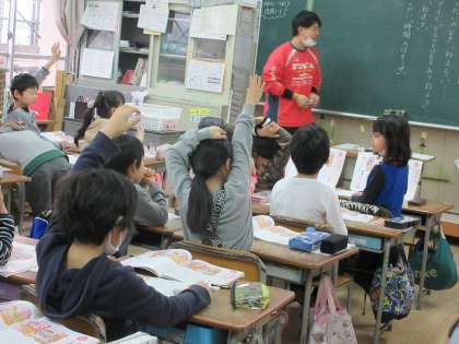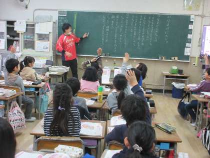 たくさんの手があがり、「なまけにんじゃ」の気持ちになって、発表しています。