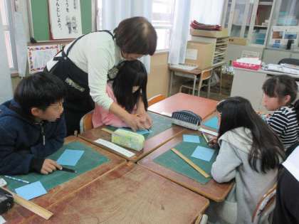 中村先生から、カッターナイフの使い方を教えてもらいました。