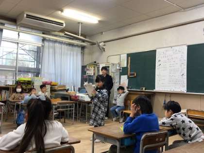 お手玉やけん玉、音読などできるようになったことをみんなの前で発表しました。
