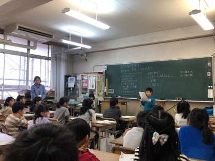 小さい頃の絵を描いて、自分が生まれた時の出来事や小さい頃の出来事を大きな声で発表していました。