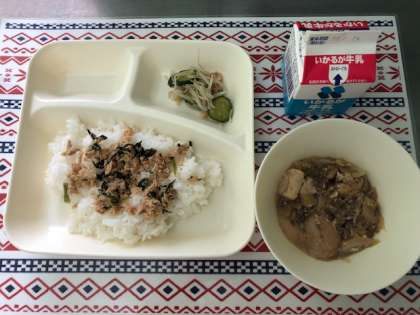 18日の給食は、すき焼き煮・もやしときゅうりのしょうがづけ・ツナっぱいため・ごはん・牛乳です。