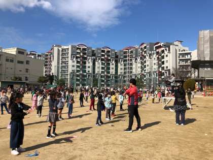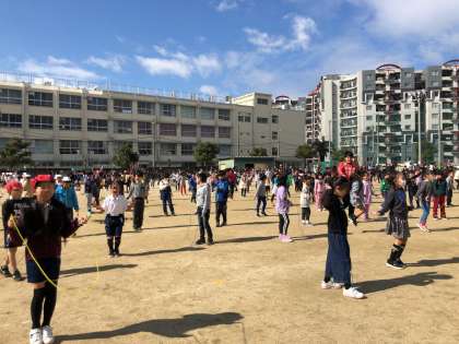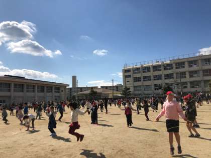 2日目の今日も15分休みになると、子どもたちは元気いっぱい運動場に集まりました。