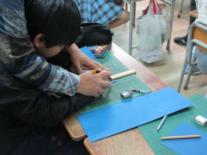 先週に続き、中村先生から、カッターナイフの使い方を教わりました。