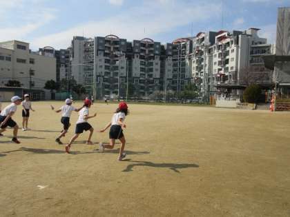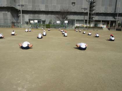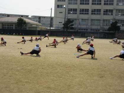 また、グループごとに、なわとびを飛びながらトラックを走りました。
