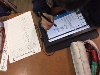 3学期から『タブレット』を活用したドリル学習に取り組んでいます。