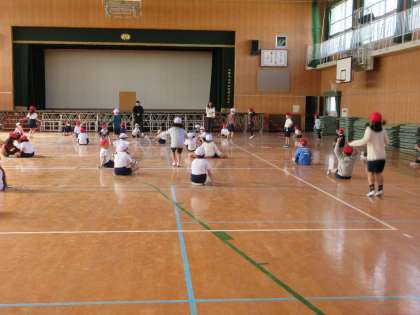 1年1組・2組は、2時限目合同で体育の授業が行われました。