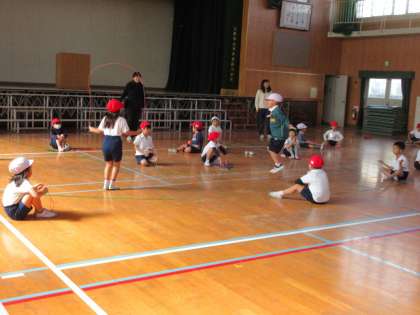 なわとびの練習で、止まらずにどこまで飛び続けられるかをみんなでやってみました。