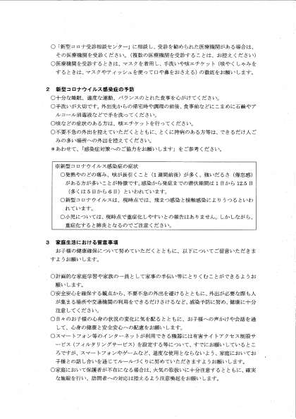 新型コロナウィルス感染症の拡大予防に向けた学校休業の延長について(お知らせ)3月11日