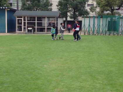 冬芝も立派に育ち、約一か月間立ち入り禁止だった芝生のところも開放されて、とても嬉しそうに放課後遊んでいました。この写真は、3年生と6年生の様子です。