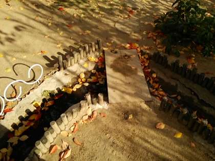 ビオトープの小さな水の流れに、色づいた落ち葉が秋を感じさせてくれます。
