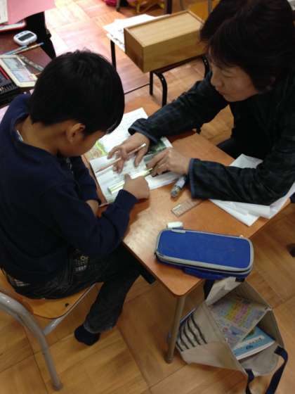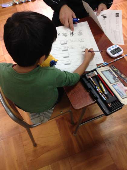 国語の勉強をしています。とてもたいせつな「読み、書き」です。