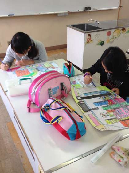 作品展に向けて、子どもたちは集中して取り組んでいます。また、終わった子たちは物の光と影を考えて、絵の描きかたを考えています。