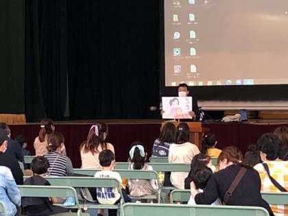 初めての登校ということで、緊張もあったと思いますが、校長先生や担任の先生、PTA会長のお話、またその他の連絡事項があり、約一時間のオリエンテーションでしたが、最後まで落ち着いた様子で真剣に聞くことができていました。