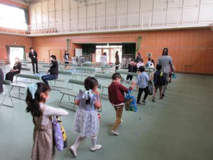 式が終わると教室に移動して座席の確認や荷物をおきました。先生と元気に帰りの挨拶を終え、保護者の方と一緒に帰宅しました。