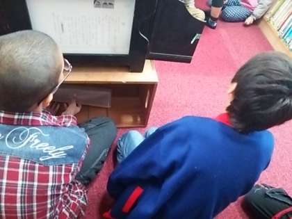6年生のお兄ちゃんが低学年の児童に紙芝居を見せていました。