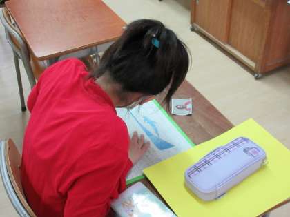 5年生は後半に自己紹介カードを書いたり、視写をしたりしました。