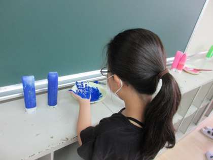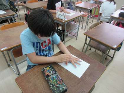 そして、、、手にポスターカラーをつけて、画用紙にぺたん。。。