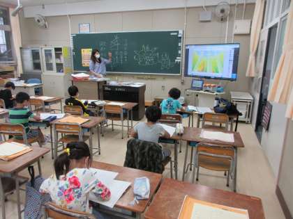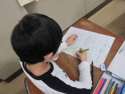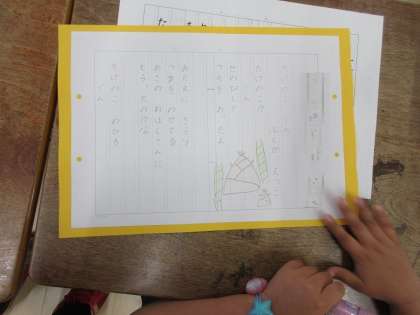 書きあがった詩の余白にたけのこや竹の絵を描いていました。みんな太くておいしそうなたけのこが上手に描けていました!