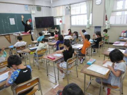 「どうぞ」、「ありがとう」とお互いに声をかけ合いながらプリントを配っていました。