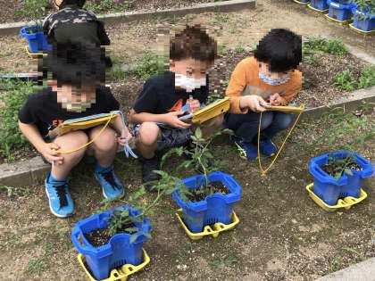 ミニトマトのなえの観察をしました。