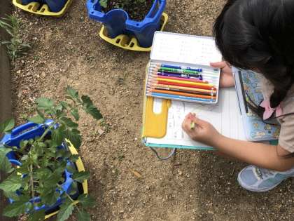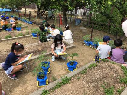 「葉っぱが100枚以上あったよ」「葉っぱは表と裏で違う色をしていたよ」「黄色くて小さな花が咲いていたよ」などたくさんの発見がありました。