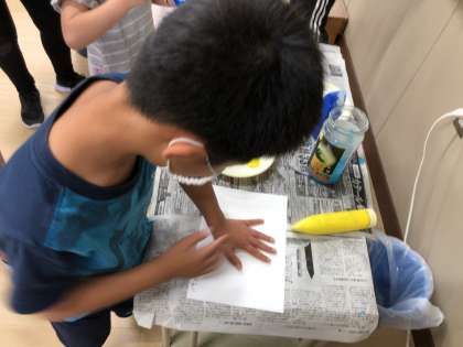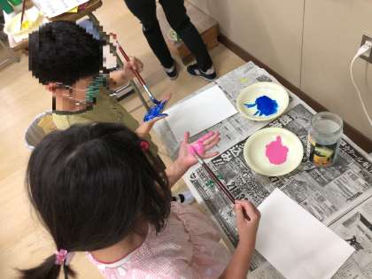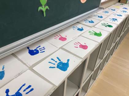緑や黄緑、ピンク、黄色、青、水色のかわいい手形が並んでいます。