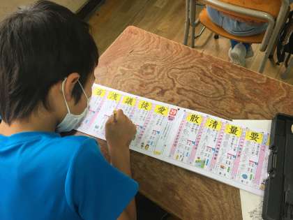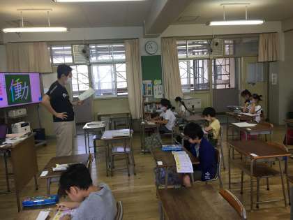 今日も4年生は漢字の学習をしました。大型モニターで、コンピュータと筆順の正確さと書く速さを競いました。また、画数のクイズでは、漢字の赤くなっているところが何画目なのか、漢字ドリルやなぞり書きをして考えました。