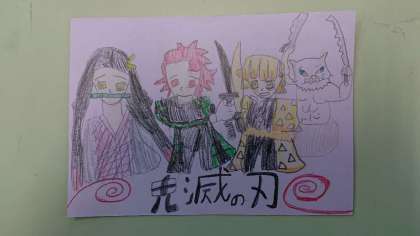 5年生の教室をのぞいてみると、色画用紙にみんなお気に入りの絵を描いていました。何に使うのか聞いてみると、、、2m間隔位に張って、ソーシャルディスタンスの基準にするそうです。スーパーなどで足跡のシールなどを見かけますが、これだとソーシャルディスタンスを取っているときに鑑賞でき、待っている間も楽しめそうですね。いろいろな所に張られる予定です。見つけてみてくださいね。