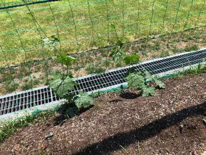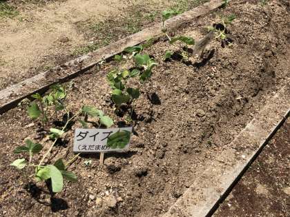 学習園にはダイズやきゅうり、とうもろこしやピーマンなどたくさんの野菜が植えられています。