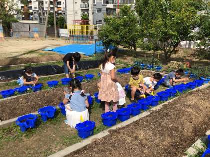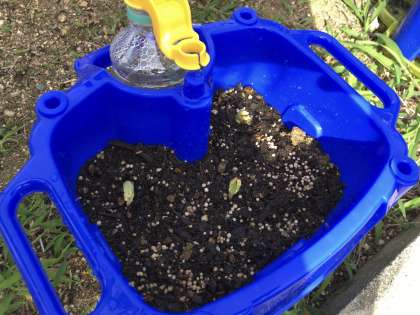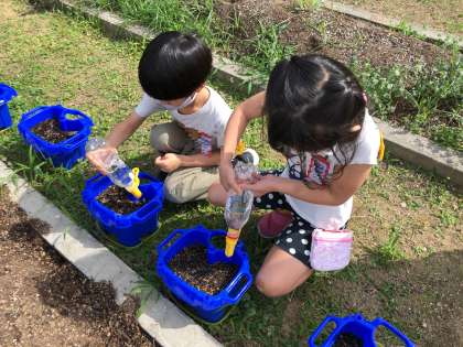 小さな芽が出ているのを見つけて「先生!芽出てる!」と嬉しそうに教えてくれました。