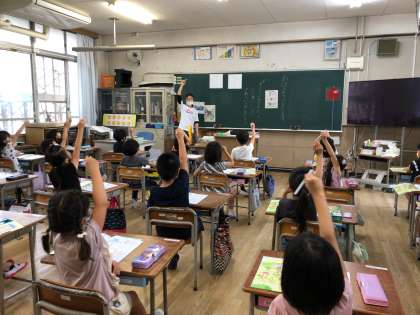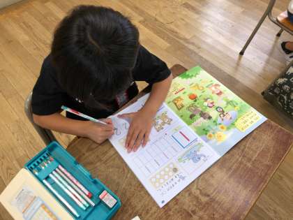みんなで書き方と読み方の練習をして、ノートに丁寧に書いています。