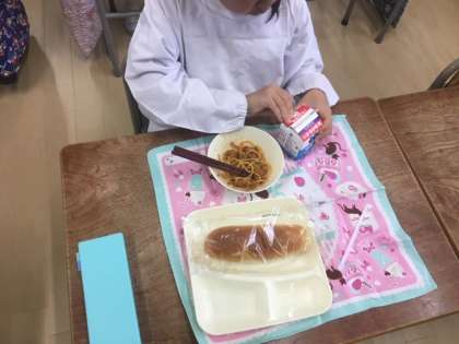 また、大人気のスパゲッティミートソースだったので、おかわりをする児童も多く見られました。
