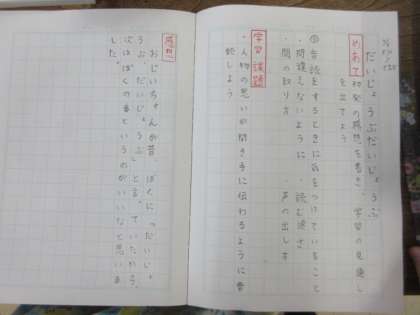 今日は3年生で黙読の時の姿勢、5年生でノートの文字が素晴らしい人たちを見つけ、思わず写真に撮りました!