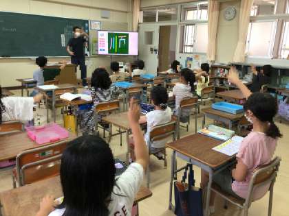 書き順を確認して、ていねいにドリルに書くことができていました。
