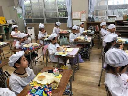 今日の給食は、やきそば・大型コッペパン・牛乳です。