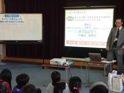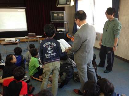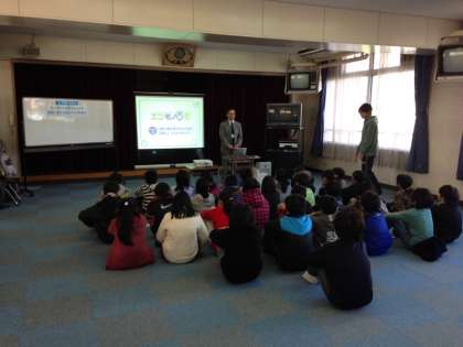 今日、2・3時間目に5年生は出前授業がありました。内容は、パナソニックのかたが来ていただき、「エコものがたり」というエコロジー、省エネのお話をされました。事前に子どもたちは冷蔵庫をどのようにすれば、省エネができるかを考えて、それを発表しました。また、今の冷蔵庫はどのように昔の冷蔵庫と比較して省エネをしているかなどでした。みんな、とても興味深々に聞いていました。