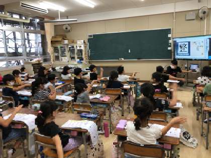 みんなで書き順の確認をして、丁寧に書くことができていました。