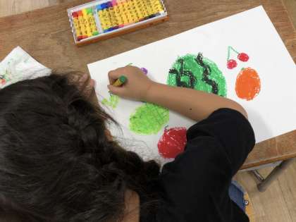 子どもたちは好きな食べ物や好きな動物など、思い思いの作品を仕上げることができていました。