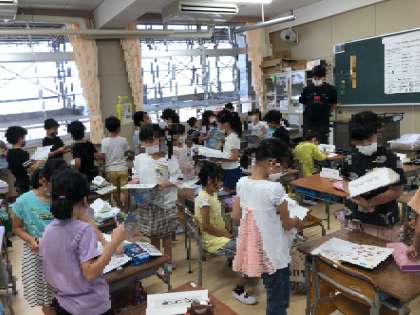 “Hello!My name is 〜.What's your name?”のフレーズを使って自己紹介をしました。