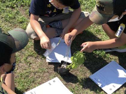 定規を使って長さをはかったり、葉の色やさわり心地など、詳しく観察することができました。