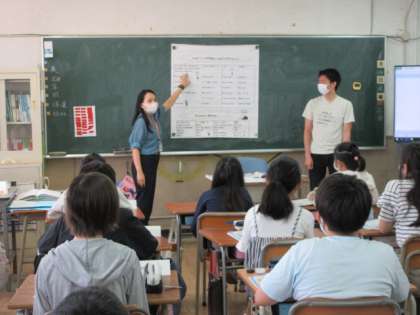 ABCソングを聞いたり、ソーシャルディスタンスを保ってできるゲームをしたりして盛り上がっていました。ネイティブの方と話せる絶好の機会です。恥ずかしがることなく、知っている言葉やボディーランゲージを使ってどんどんLiza先生に話しかけてほしいと思います。